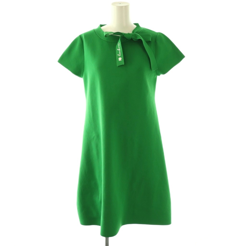 22EA 小花付きリボンモチーフジャガードドレス