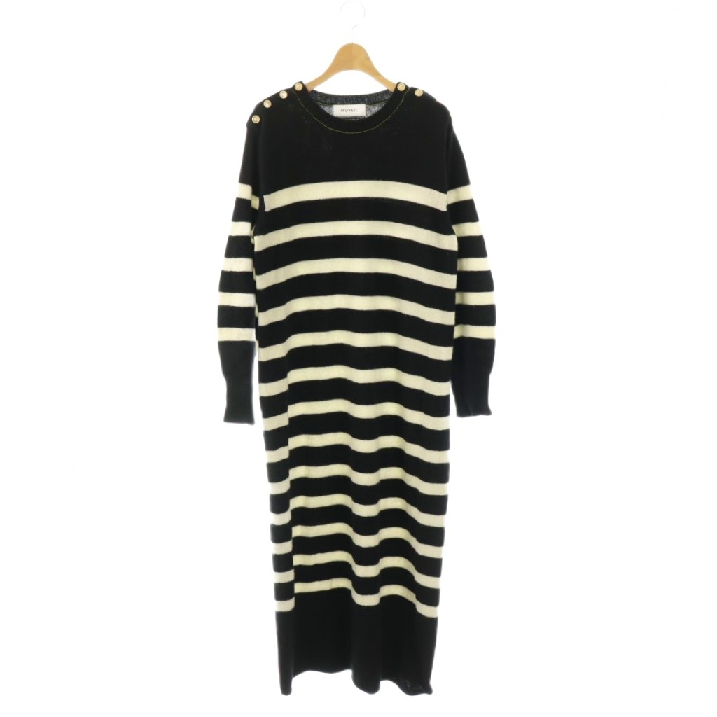 ウール金ボタンボーダーニットワンピース