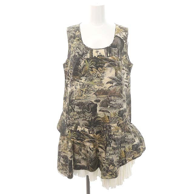 リーフ柄×プリーツノースリーブワンピース