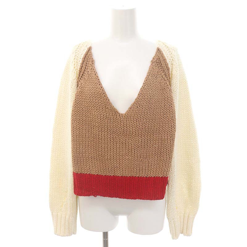 コットン 配色 Vネックニット