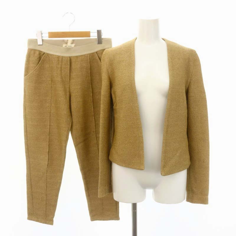 ラフィア風 ノーカラージャケット パンツ セットアップ