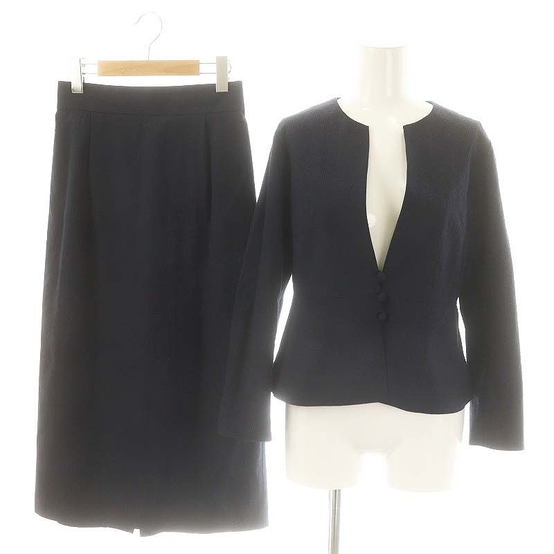 サッカーノーカラージャケット サッカーミディタイトスカート セット
