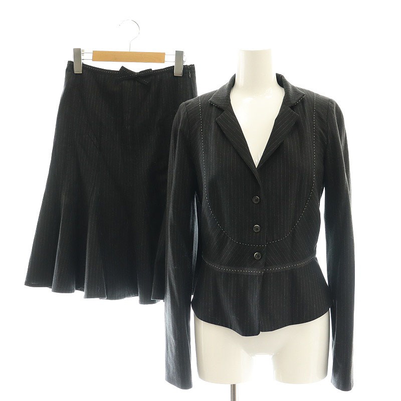 ピンストライプ ウール ペプラムジャケット スカート セット