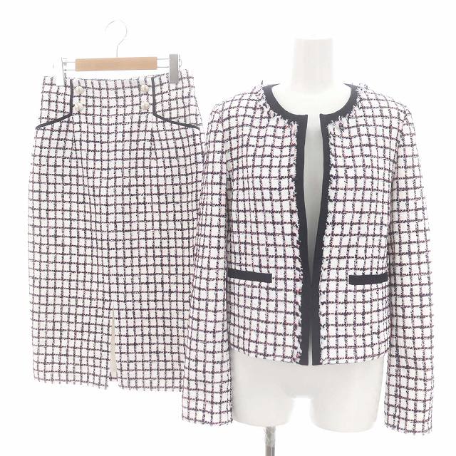 トリコロールツイードノーカラージャケット トリコロールツイードハイウエストペンシルスカート セットアップ
