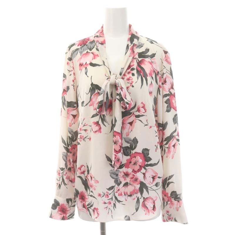 ローズフラワープリントリボンブラウス