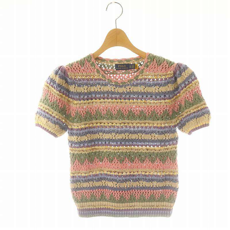 マルチカラー 半袖クロシェニット