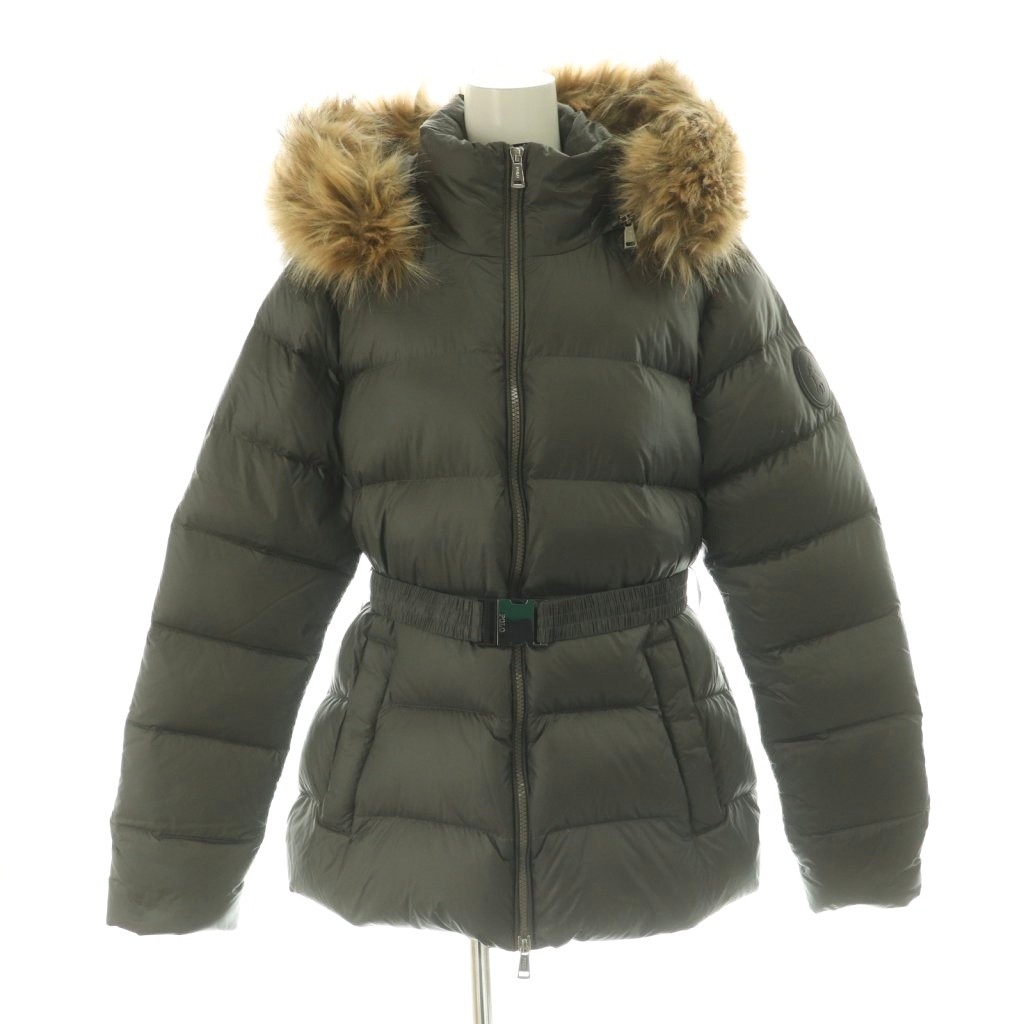 近年モデル レザーパッチ ファー付き ダウンジャケット