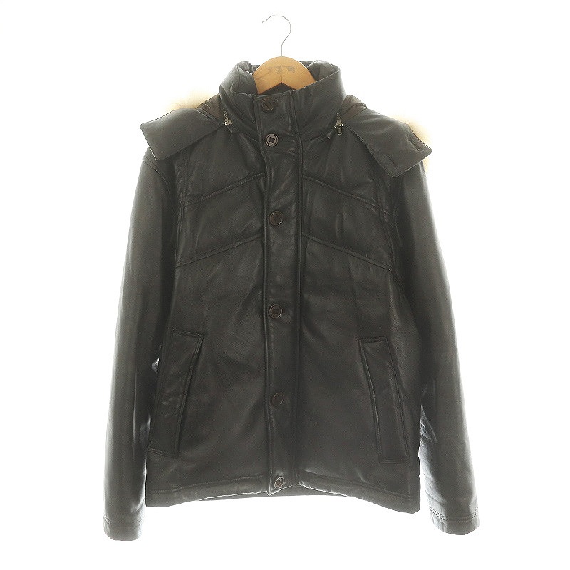 ラクーンファー付き レザー ダウンジャケット
