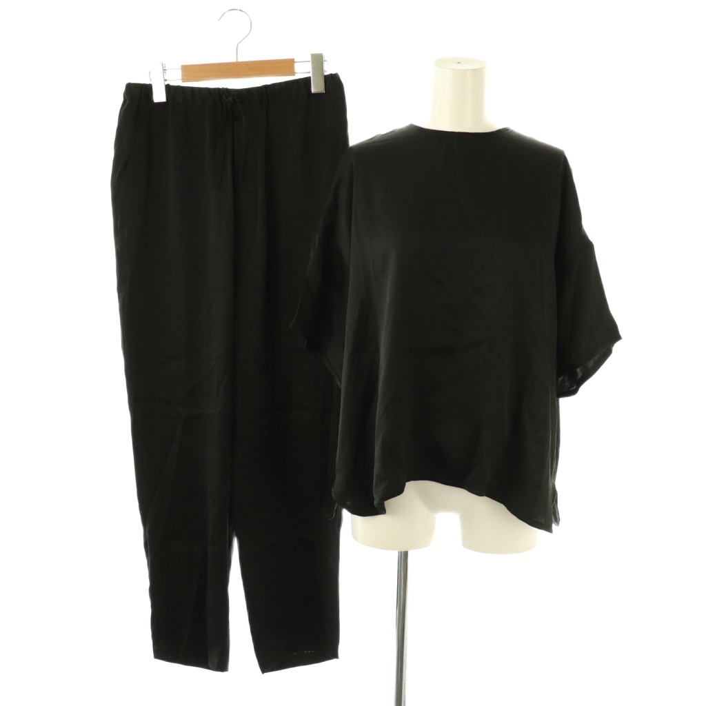 シルクプルオーバーブラウス×パンツ セットアップ