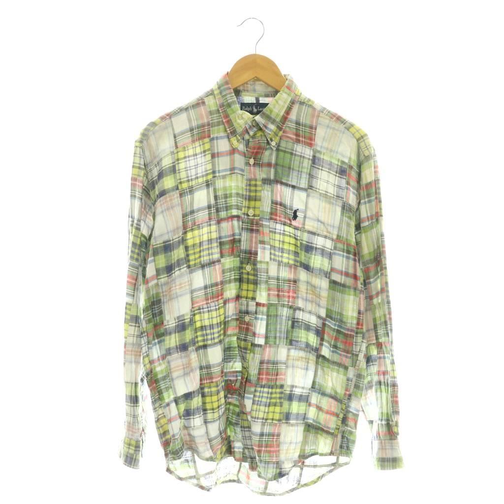 パッチワーク チェックボタンダウンシャツ
