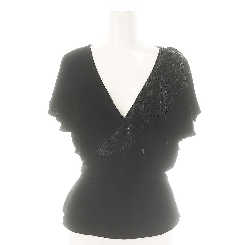 ビーズ刺繍ベロアフリルカシュクールトップス