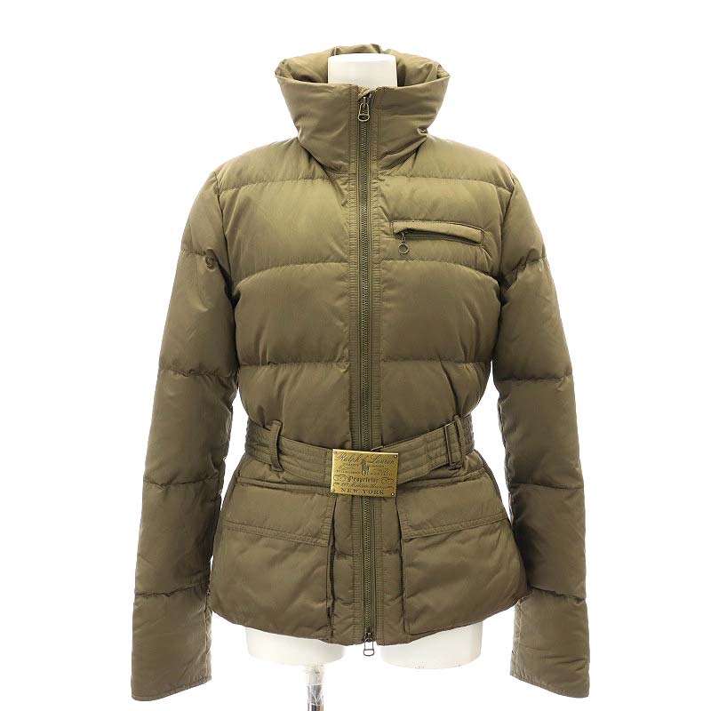 ロゴバックルベルト付きスタンドカラーダウンジャケット