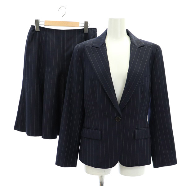 ストライプ シングルジャケット ひざ丈 フレアスカート セット