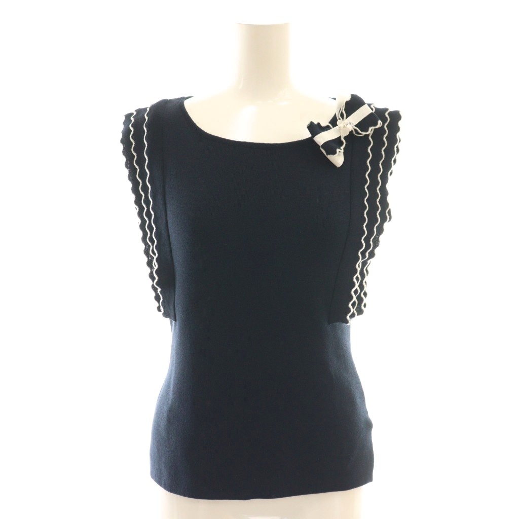 リボンブローチ付き フリル ノースリーブニット