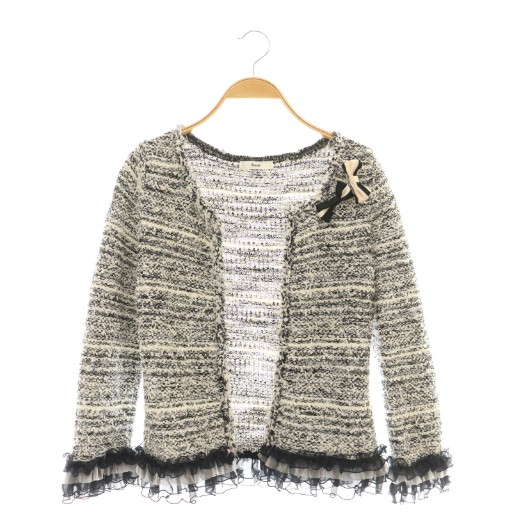 リボンブローチ付き ニットツイード カーディガン