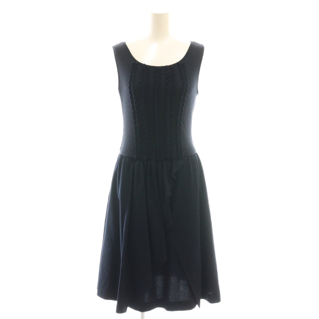 ニット切替 フリル ノースリーブワンピース