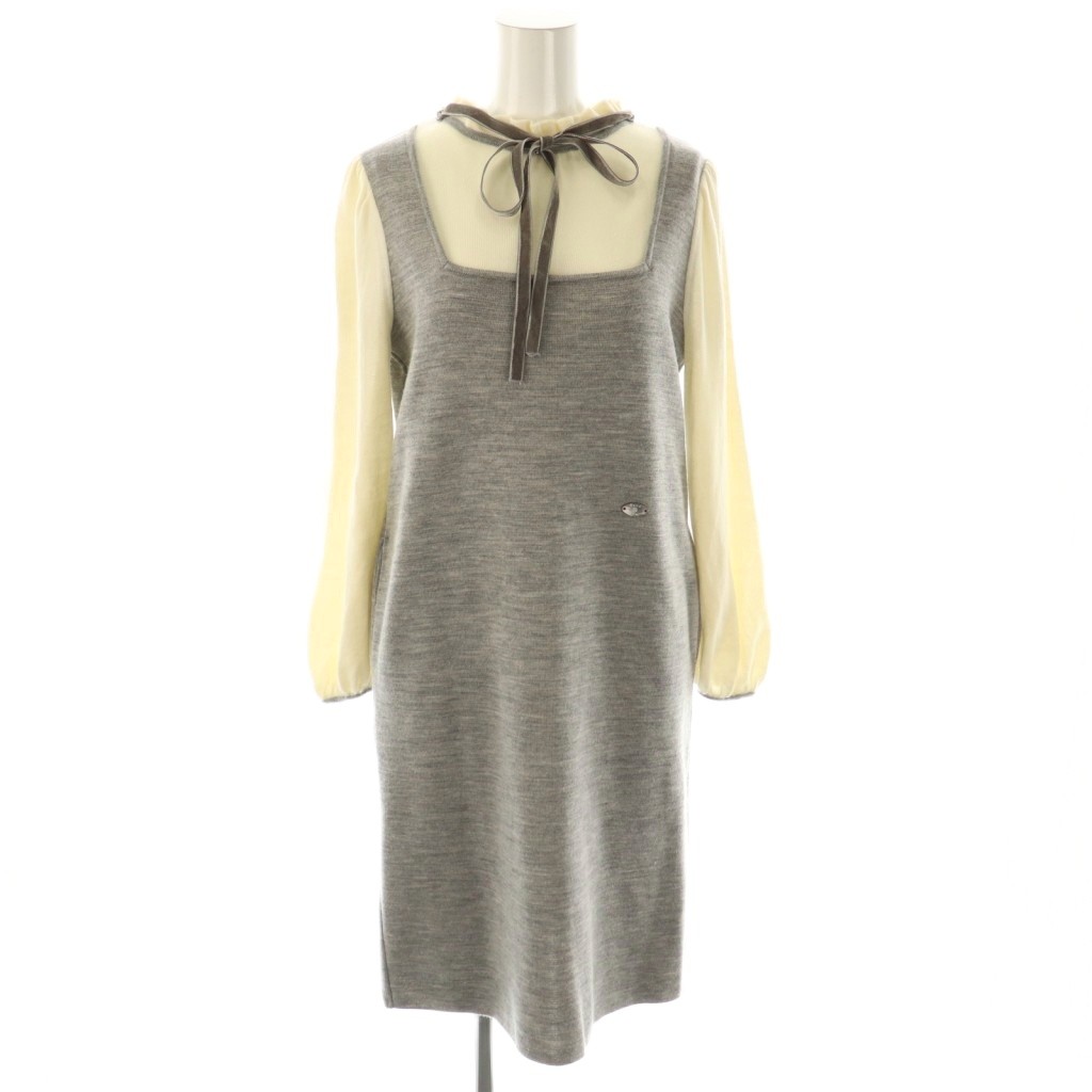 6242100ボウタイレイヤードニットワンピース