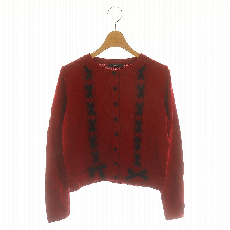 22年 バックリボン ビジューパールボタン カーディガン
