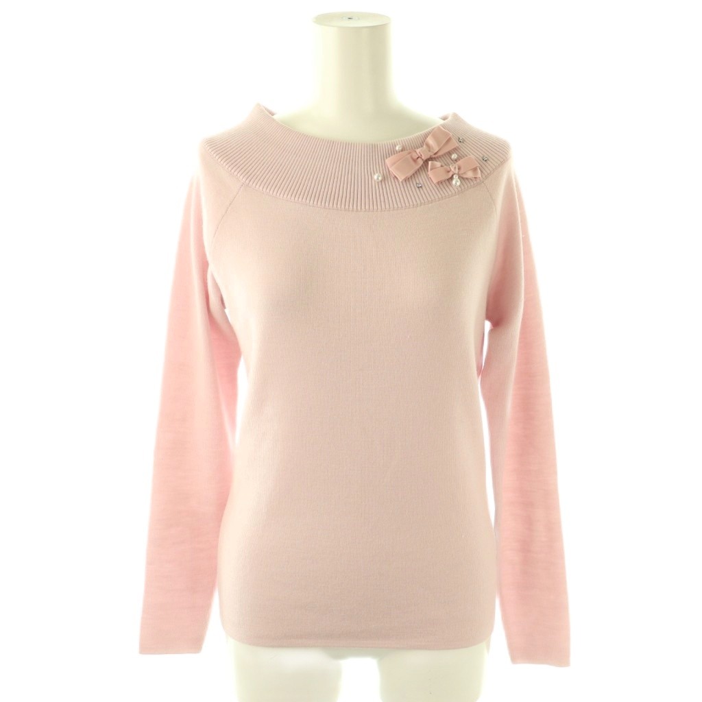 6812110 リボンフェイクパール装飾ウールニット