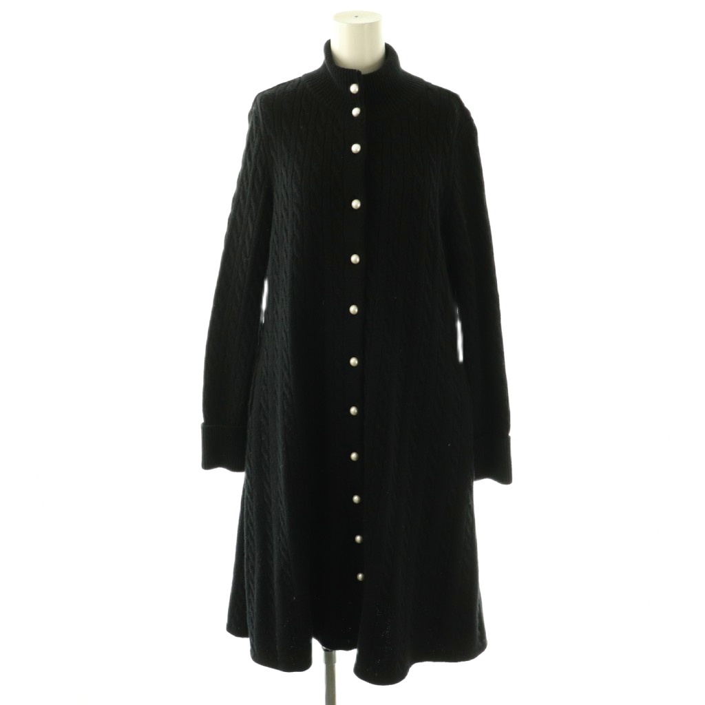 フェイクパールボタン ケーブルニットワンピース
