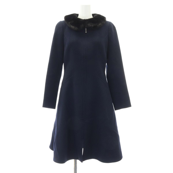 ミンク襟付き ウール ロングコート
