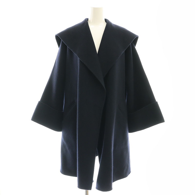 23AW 2way ノーカラー エコファー付け襟 メルトン Aライン ミドルコート