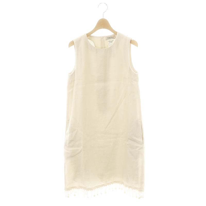 リネン 裾フリンジ ノースリーブワンピース