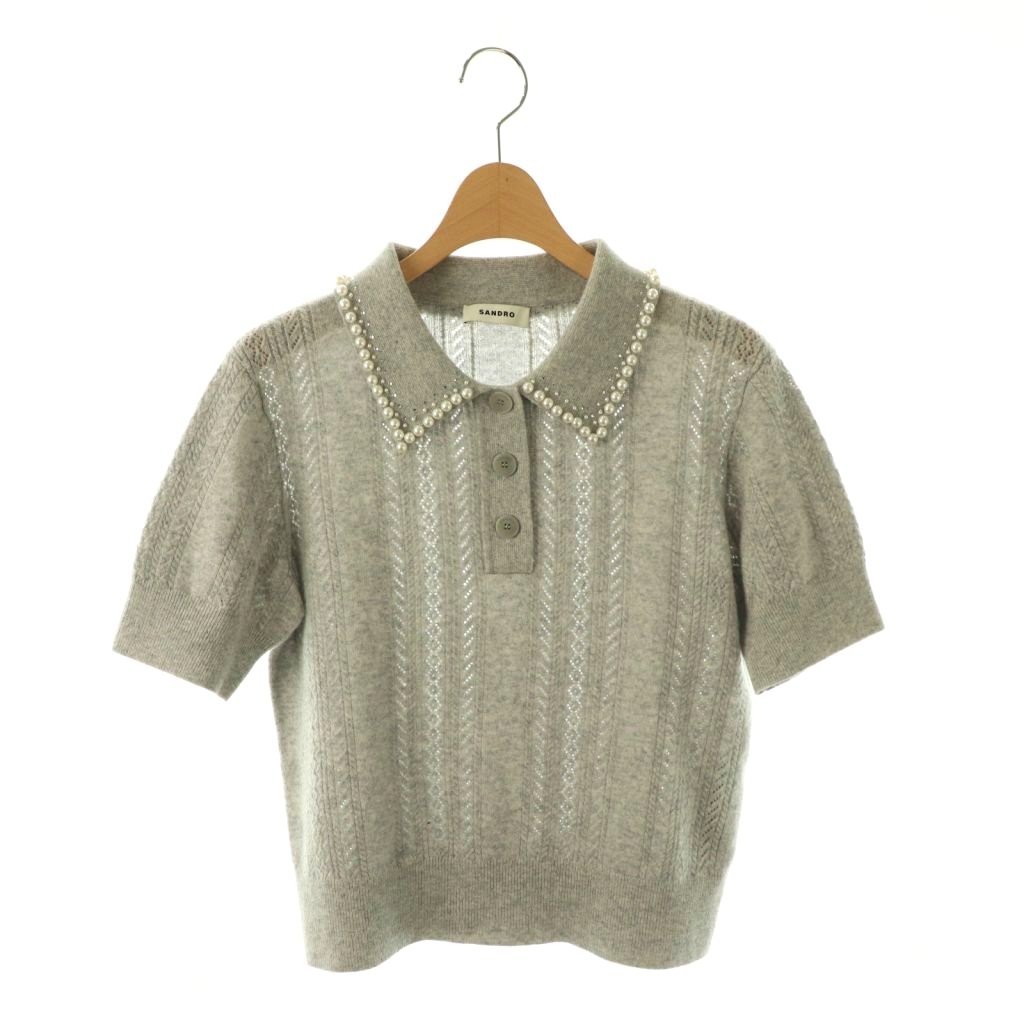 フェイクパール襟 ポロニット