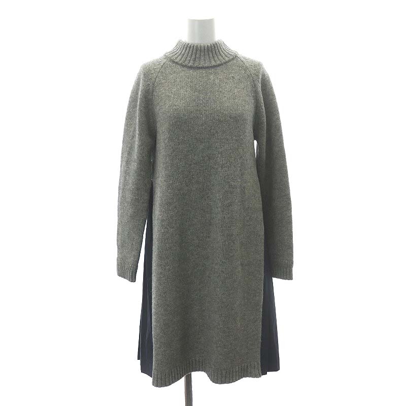 布帛切替 プリーツ ウールニットワンピース