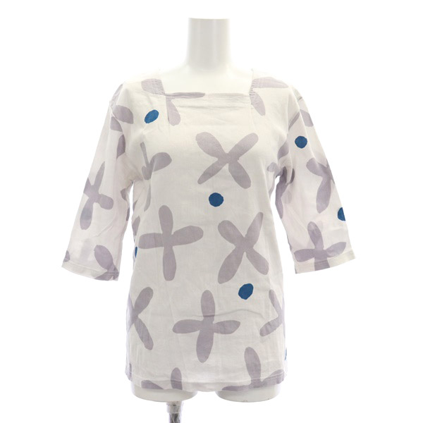 総柄 スクエアネック 七分袖 カットソー
