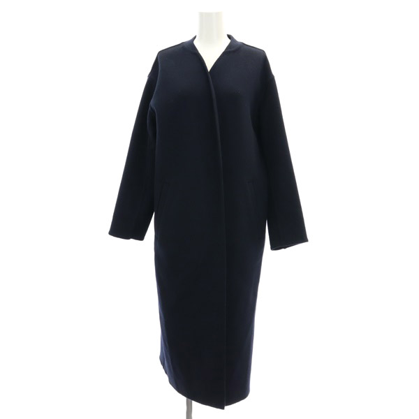 ノーカラーVネックリバーコート
