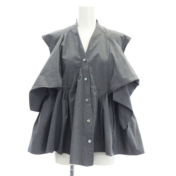 ショルダーギャザー ノースリーブ タイカラーブラウス