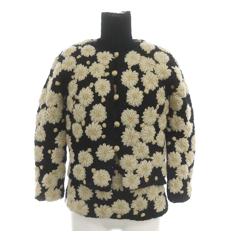 花柄 刺繡 ノーカラージャケット ニット セットアップ