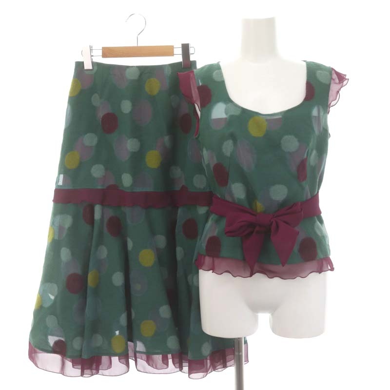 ウール混ドットブラウス スカート セットアップ