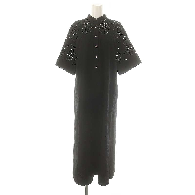 ヘリンボーン柄 ウール ノーカラースリットP/O ワンピース