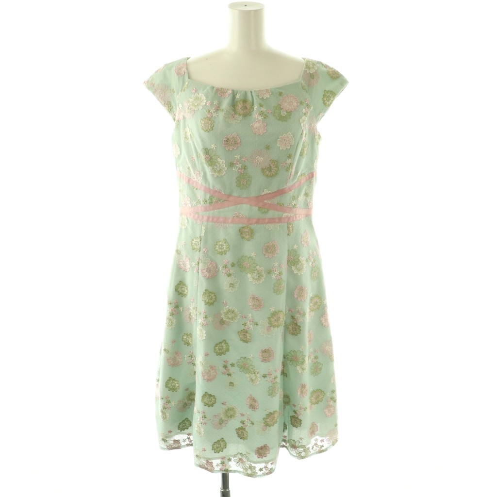 フラワー刺繍 フレンチスリーブ ワンピース