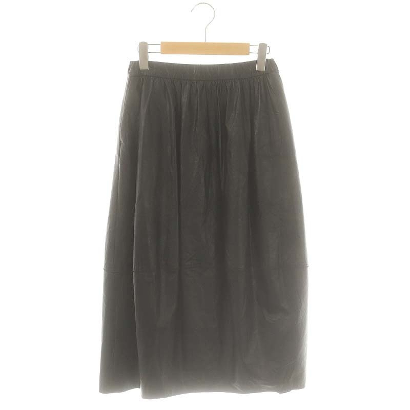 ×金子綾 ウェット フェイクレザー ギャザー ミディスカート
