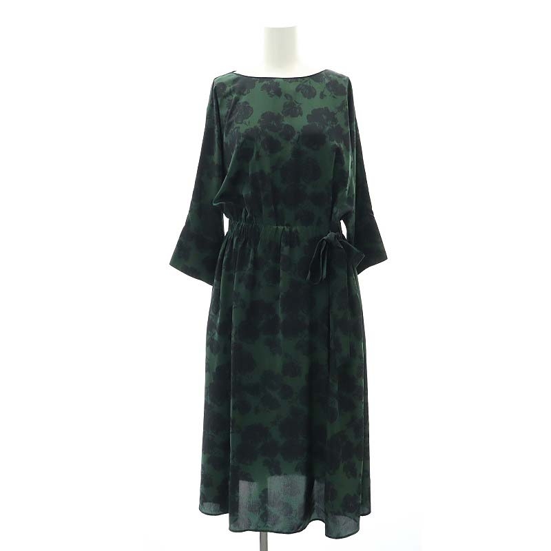 シャドーフラワープリント ウエストギャザーワンピース