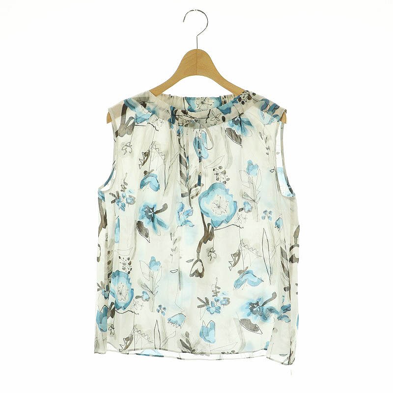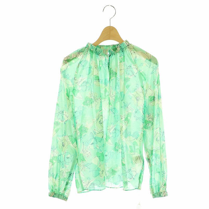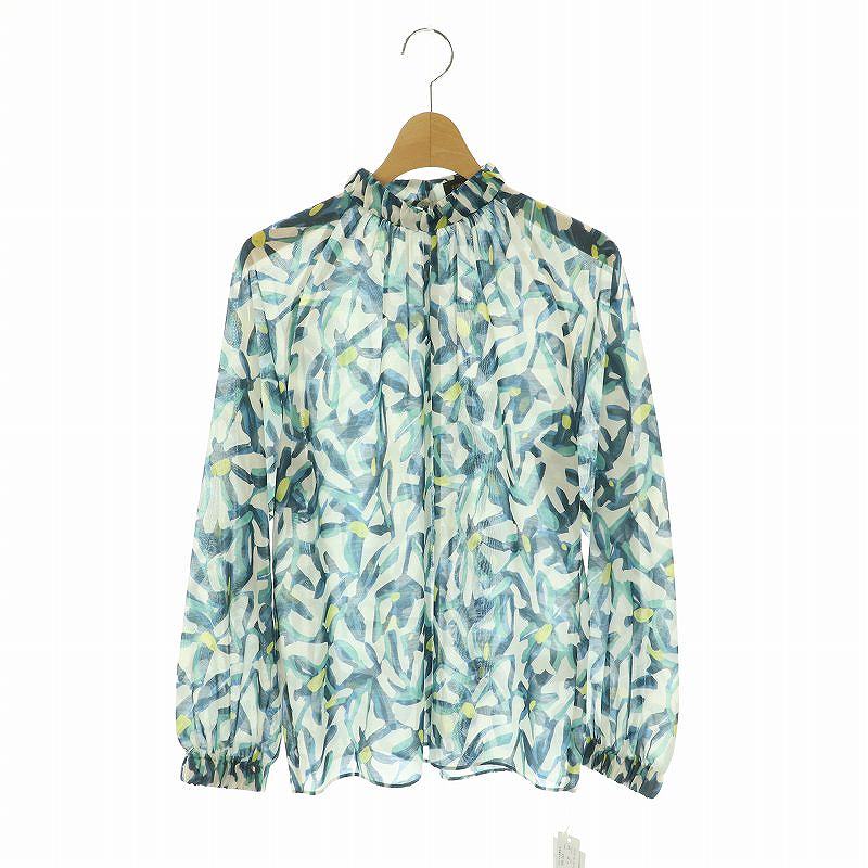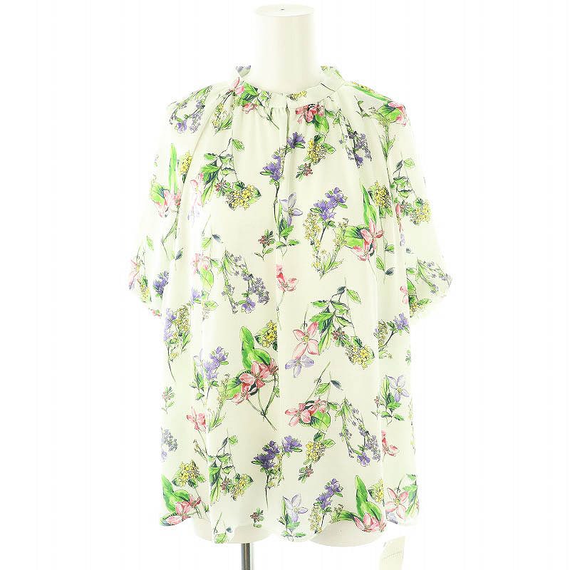 24SS マギーフラワープリント ギャザースタンドカラーブラウス