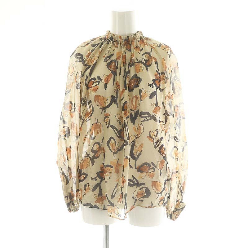 23AW リラリーフプリント ネックギャザーブラウス