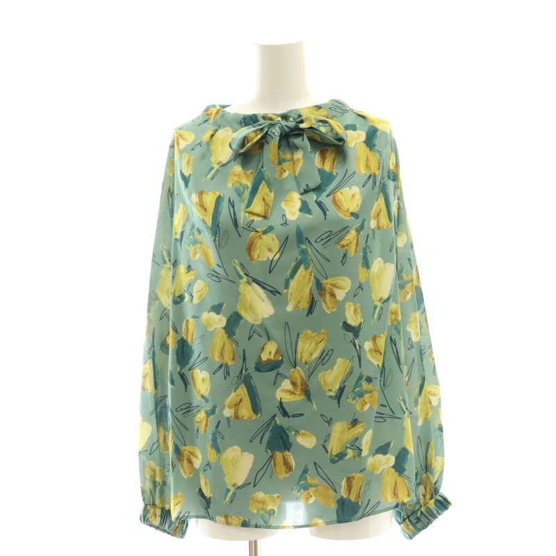 23AW ブーゲンビリアプリント ボウタイギャザーブラウス