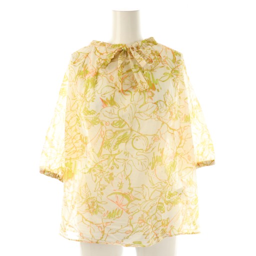 24SS ベジタブルリーフプリント ネックギャザーブラウス