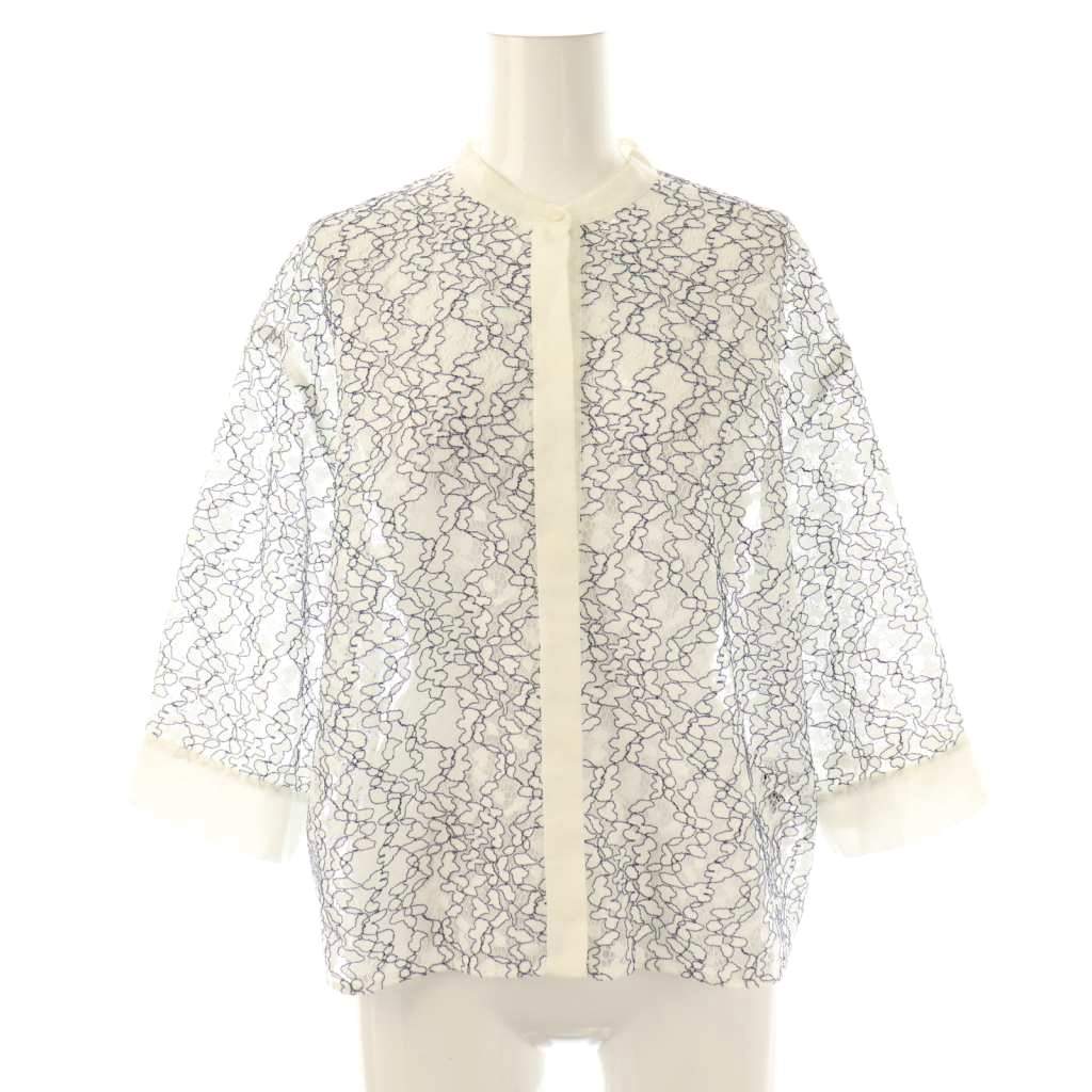 23SS コットンシルク ラッフルカラーブラウス