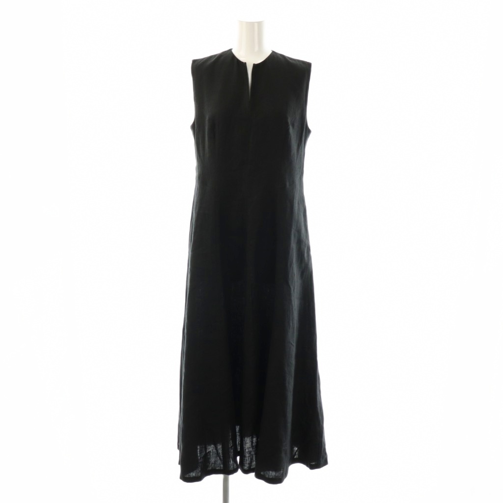 23SS スムースリネン キーネックフレアワンピース