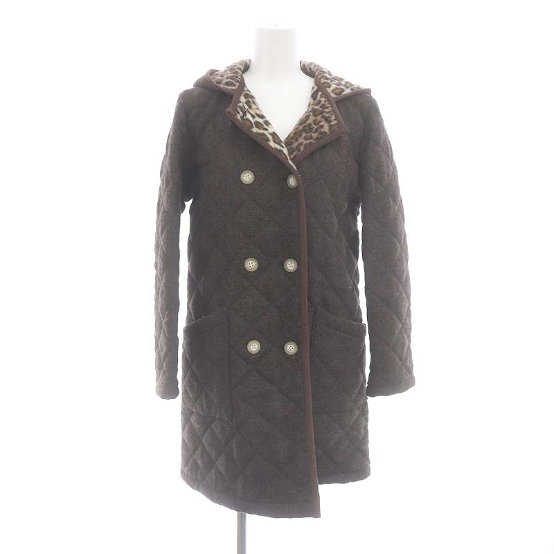キルティング フード ロングジャケット レオパード