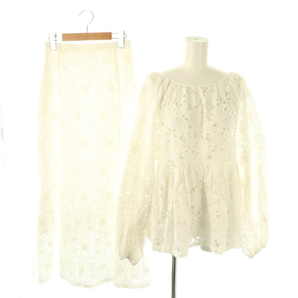24SS カットワークレースボリュームブラウス スカート セットアップ