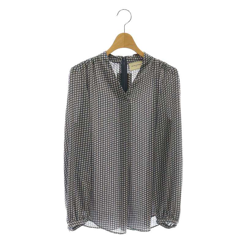 24AW P バックサテン Vネック ブラウス 幾何学柄