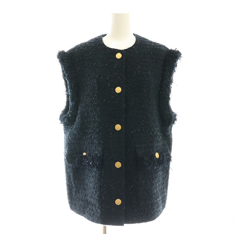 ファンシーツイード ノーカラー ベスト