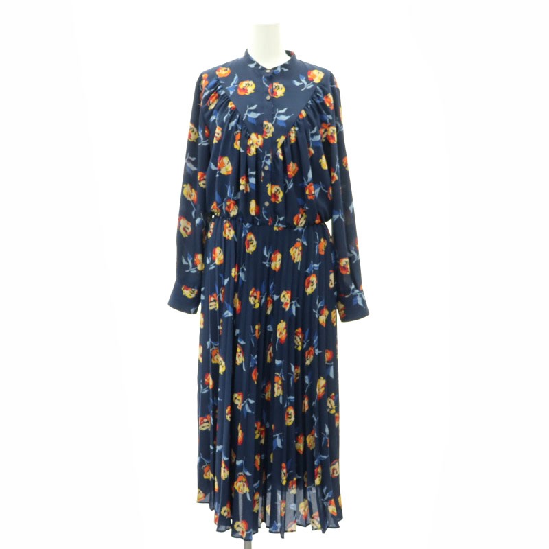カラフルローズプリント プリーツワンピース