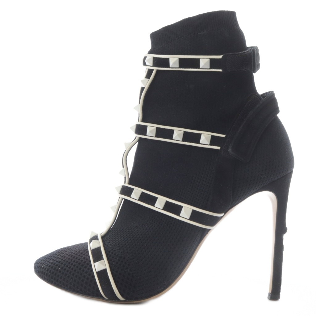 スタッズヒールニットブーツ